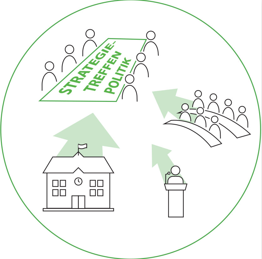 Strategiegruppe als Fortsetzung des Beirats, der den KBR intensiv begleitet hatte, mit Vertreter:innen aus Politik, Verwaltung, Wirtschaft, Zivilgesellschaft und ehemaligen KBR-Teilnehmenden: Wo stehen wir? Sind wir noch auf dem richtigen Weg? Welche neuen Ideen und Impulse gibt es? Wen braucht es noch mit im Boot? (geplant)